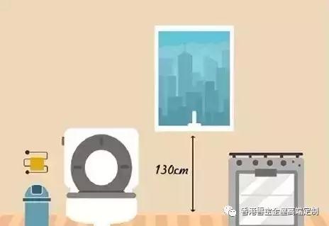 衛(wèi)生間是非常隱私并且需要采光較好的地方,所以衛(wèi)生間的窗臺(tái)高130厘米-150厘米左右,窗扇上懸,這樣窗戶不但可以長(zhǎng)開通風(fēng),也可以保護(hù)私密性。