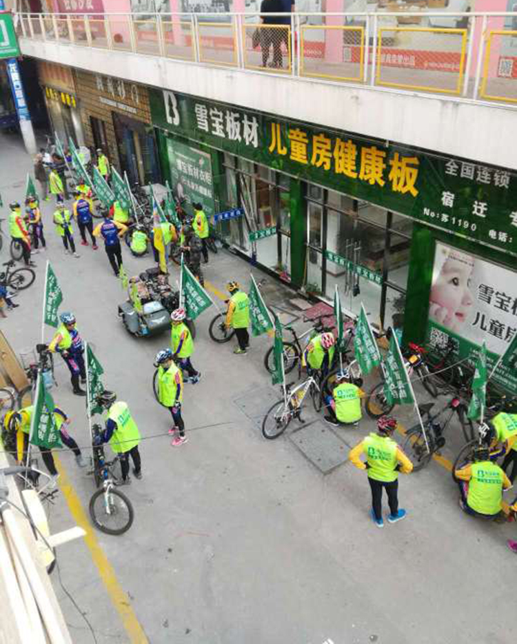 綠色出行環(huán)保出行健康出行,騎行就是最好的行動(dòng)。作為傳統(tǒng)行業(yè),板材是摸得著看得到的產(chǎn)品,而產(chǎn)品品質(zhì)是決定品牌發(fā)展的命脈。雪寶板材16年木業(yè)深耕,一貫堅(jiān)持重環(huán)保、重質(zhì)量的原則,以健康環(huán)保的產(chǎn)品和優(yōu)質(zhì)一流的服務(wù)立足市場(chǎng)贏得廣大消費(fèi)者的信賴和肯定。此次雪寶板材宿遷專賣店通過騎行來邀您一起關(guān)注健康關(guān)注環(huán)保是對(duì)雪寶品牌堅(jiān)定健康環(huán)保使命的最有力的契合。