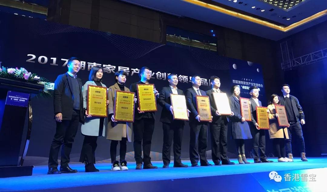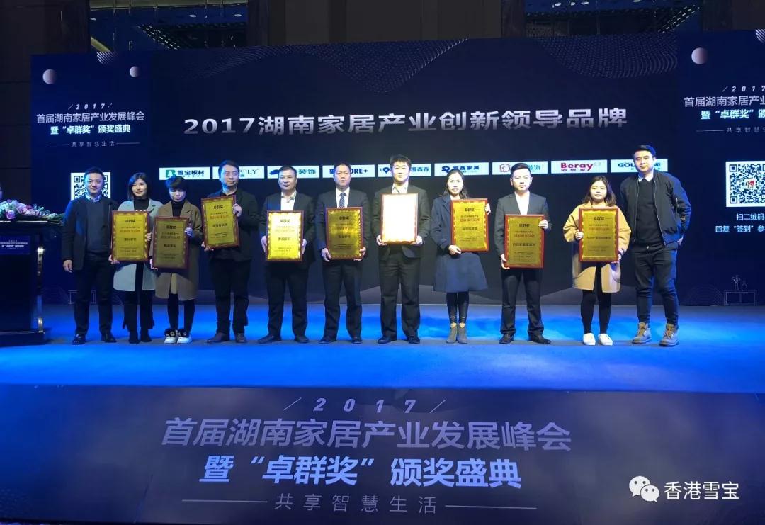▲2017年度卓群獎家居產業(yè)創(chuàng)新領導品牌頒獎,雪寶國內營銷中心熊總(最中間)上臺領獎;